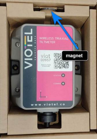 Each box is packed with a magnet along with the Viotel Wireless Triaxial Tiltmeter. This magnet is required to change the status of the device.