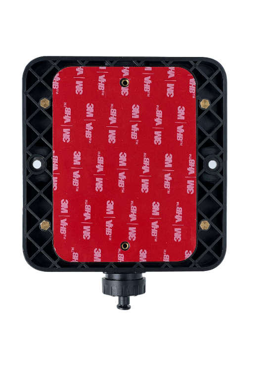 Clean and dry the mounting locations surface. Peel off the red plastic layer on the back of the node and firmly press it onto the required location. Keep the device and surface under this same pressure for approximately 20 minutes (to achieve 50% bond strength in room temperature).